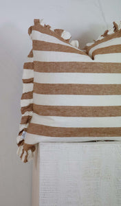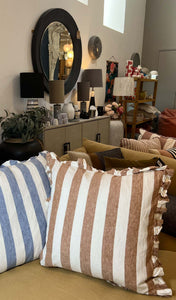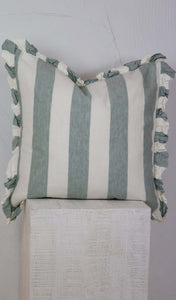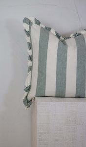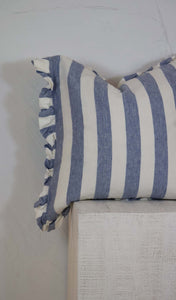 Striped Linen Cushion with Ruffled Edges - Duck Feather Filled