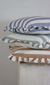 The Interiors Yard: Striped Linen Ruffle Cushion - 3 Colours