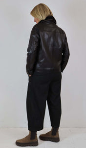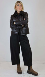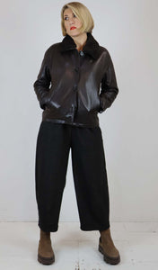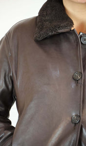Fabric: Exterior: 100% Lambskin Leather, Collar: 100% Wool, Lining: 100% Polyester