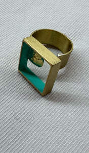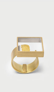 The classic square stars in a ring that stands out for its strong personality and finesse. A piece of jewellery that ingeniously uses a timeless color combination to emphasize the linearity of the design.