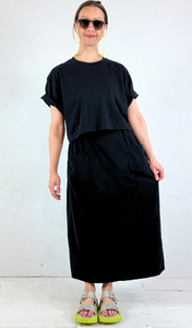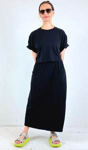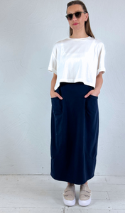 Introducing Gina, our new Jersey Bubble Skirt. With an elasticated waistband, this stylish skirt boasts a flattering flat front and seamlessly integrated side pockets.